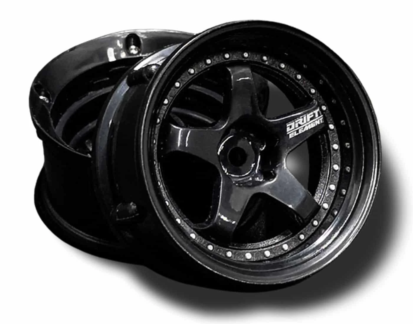- Factory description: DS Racing Drift Element Wheel – Adj. Offset (2) / Triple Black with Silver Rivets