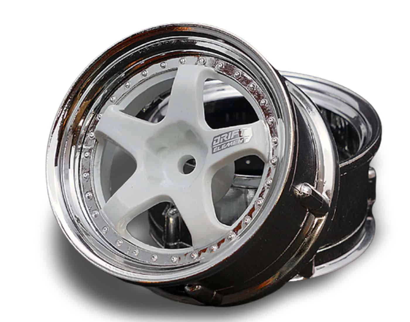 - Factory description: DS Racing Drift Element Wheel – Adj. Offset (2) / White Face Chrome Lip