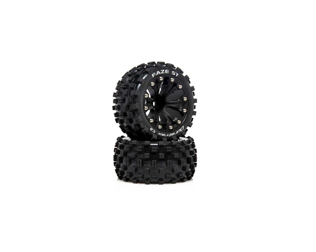 This is a pack of two pre-mounted DuraTrax Faze ST 2.8″ 2WD Stadium Truck Tires with a 0.5 Offset. These tires are compatible on the front and rear with most 1/10 scale 2WD stadium trucks that use a 12mm hex.