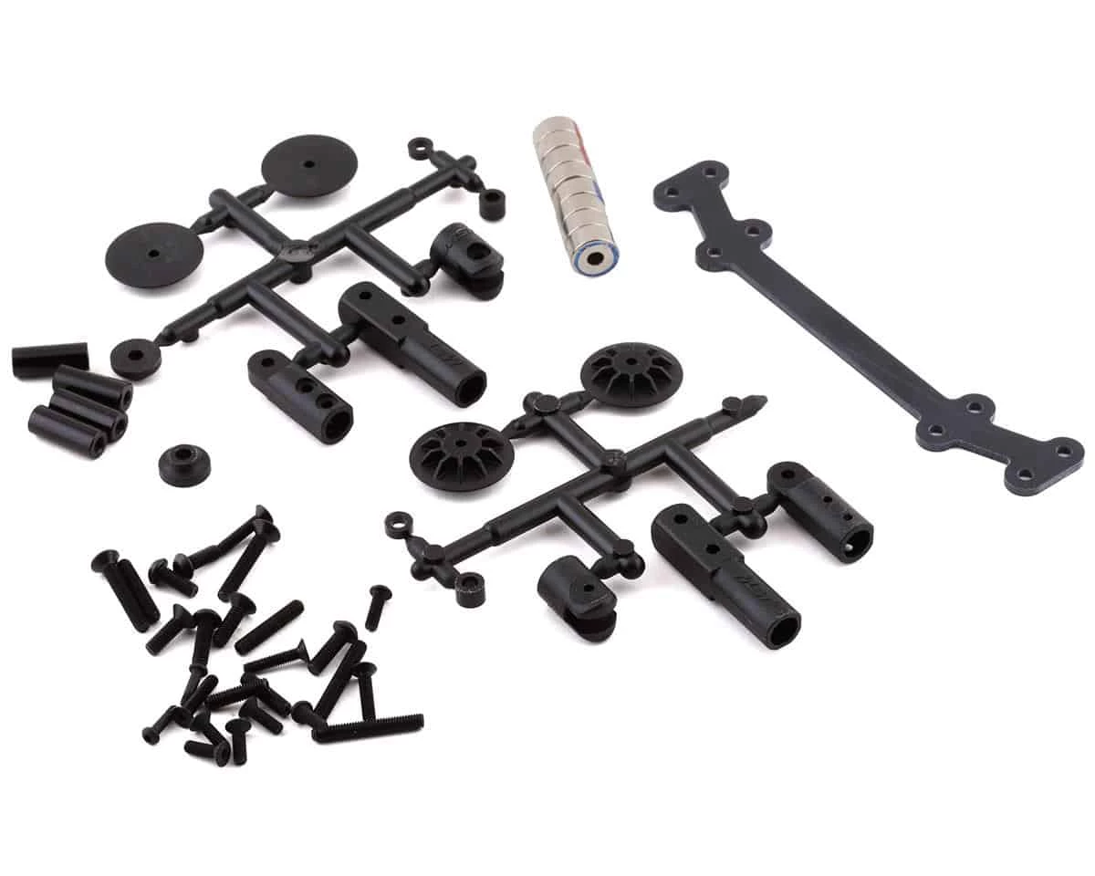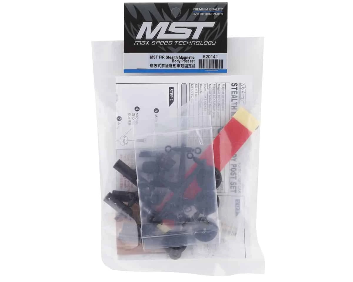 The MST Front and Rear Stealth Magnetic Body Mount Set is designed to provide a sleek and stylish body mount option for your drift car build. By eliminating the body posts and pins, and using magnets to secure the body to the chassis, this highly adjustable conversion kit creates a more polished and realistic look that cannot be matched by standard body posts and clips. Package includes the parts needed to convert one drift car chassis to a magnetic body mount system.