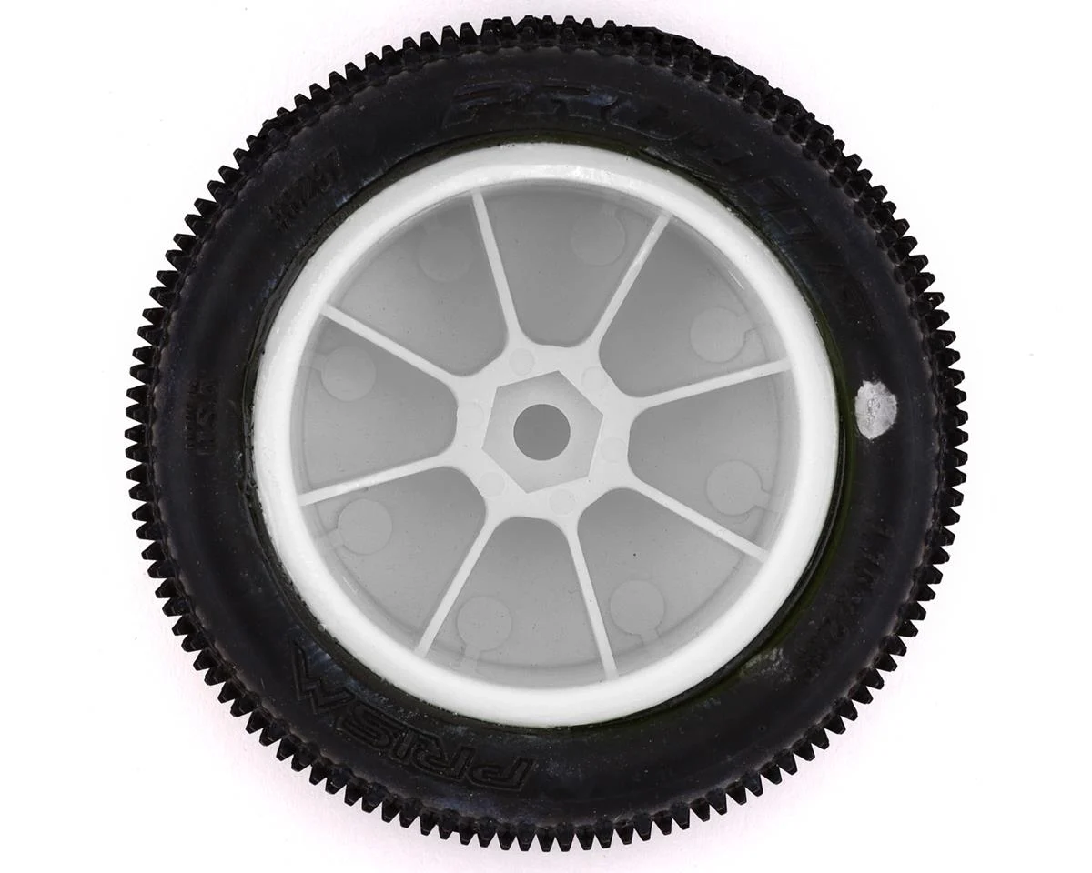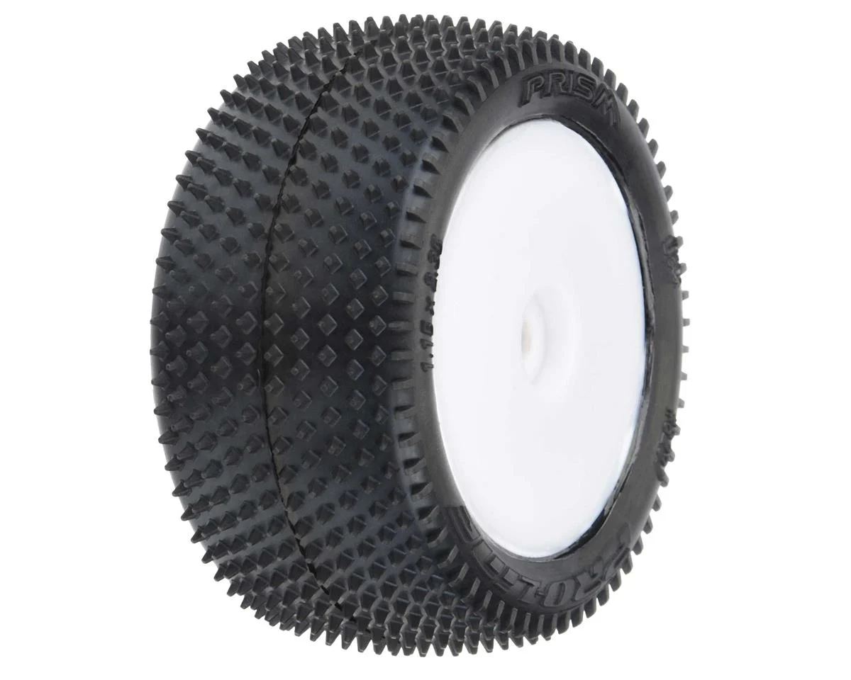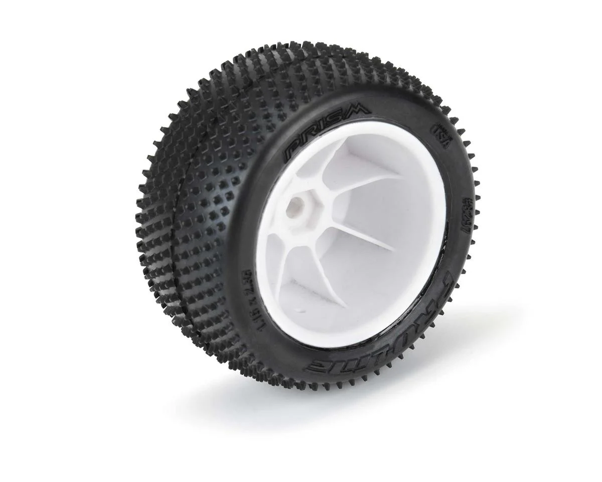 The Pro-Line Mini-B Rear Pre-Mounted Prism Carpet Tire are perfect for racing at the local carpet track, or your living room. The Prism features Ultra-Sharp Prism-shaped Pins for long-lasting carpet racing tread and very consistent performance. The Prism pins are positioned with the knife edge pointed front to back and side to side for maximum grip and stay sharp even as they wear down. The Prism rear tires are conveniently pre-mounted to Yellow Mini-B rear wheels and are made from a special carpet racing compound. Pair the Prism rear tires with the Wedge front tires (PRO8298-12) for maximum carpet performance.