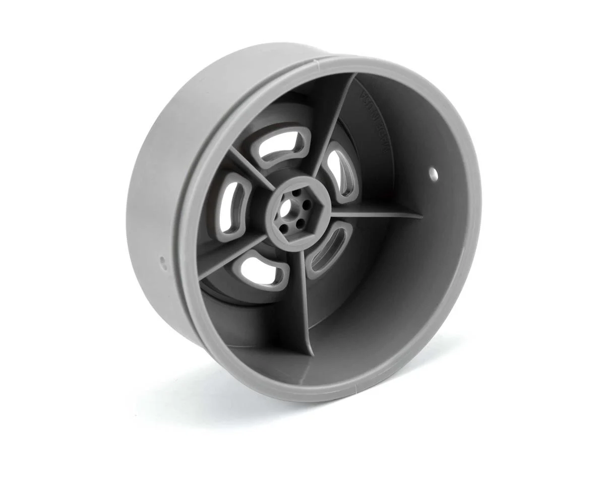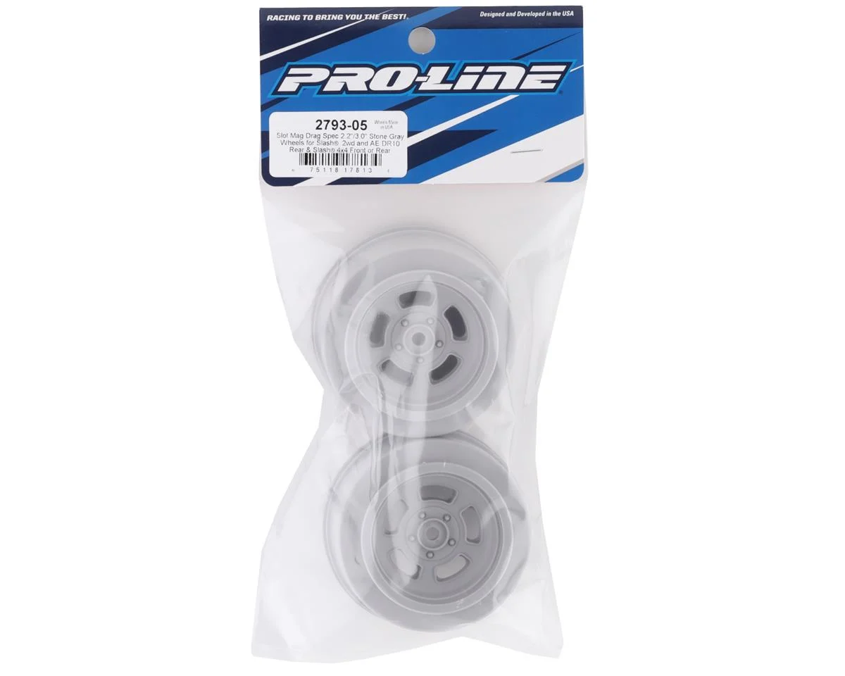 This is a pair Pro-Line Slot Mag Drag Spec 2.2/3.0 Rear Drag Racing Wheels give no prep racers the option to create a classic look that has been a staple wheel design in racing for many decades. The outside ring of this wheel has a shiny, polished finish while the spoke detail is textured with a matte finish to match the look and feel of the real thing. The Slot Mag wheels were specifically made for no-prep Drag racing and are a perfect fit with Pro-Line’s Hoosier Drag 2.2/3.0″ Rear Tires.