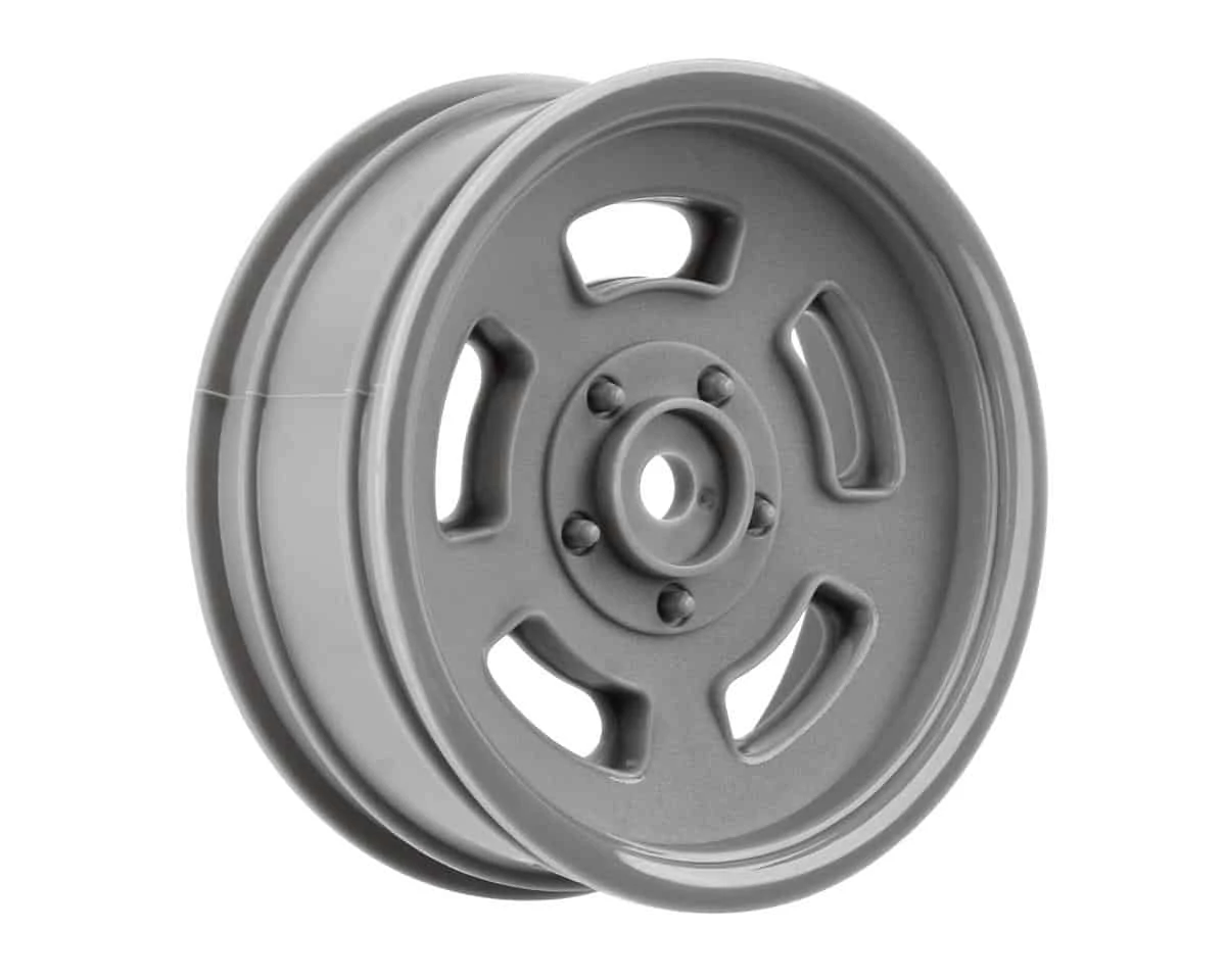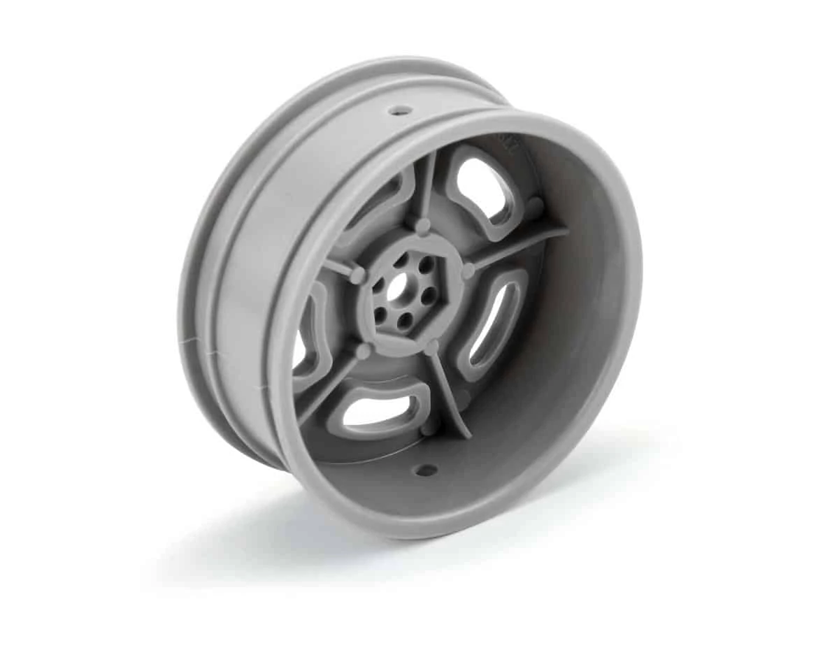 Pro-Line Slot Mag Drag Spec 2.2″ Front Drag Racing Wheels give no prep racers the option to create a classic look that has been a staple wheel design in racing for many decades. The outside ring of this wheel has a shiny, polished finish while the spoke detail is textured with a matte finish to match the look and feel of the real thing. The Slot Mag wheels were specifically made for no-prep Drag racing and are a perfect fit with Pro-Line’s Hoosier Drag 2.2″ Front Tires.