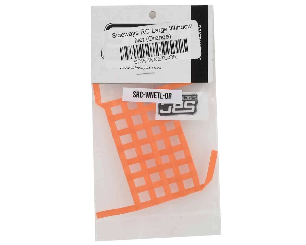 This is a Sideways RC Large Orange Window Net, an ideal scale option part to add realism to any 1/10 drift kit. This fabric window net is handmade with the colors infused directly into the product in multiple pigment options. This pack includes one large scale window net.
