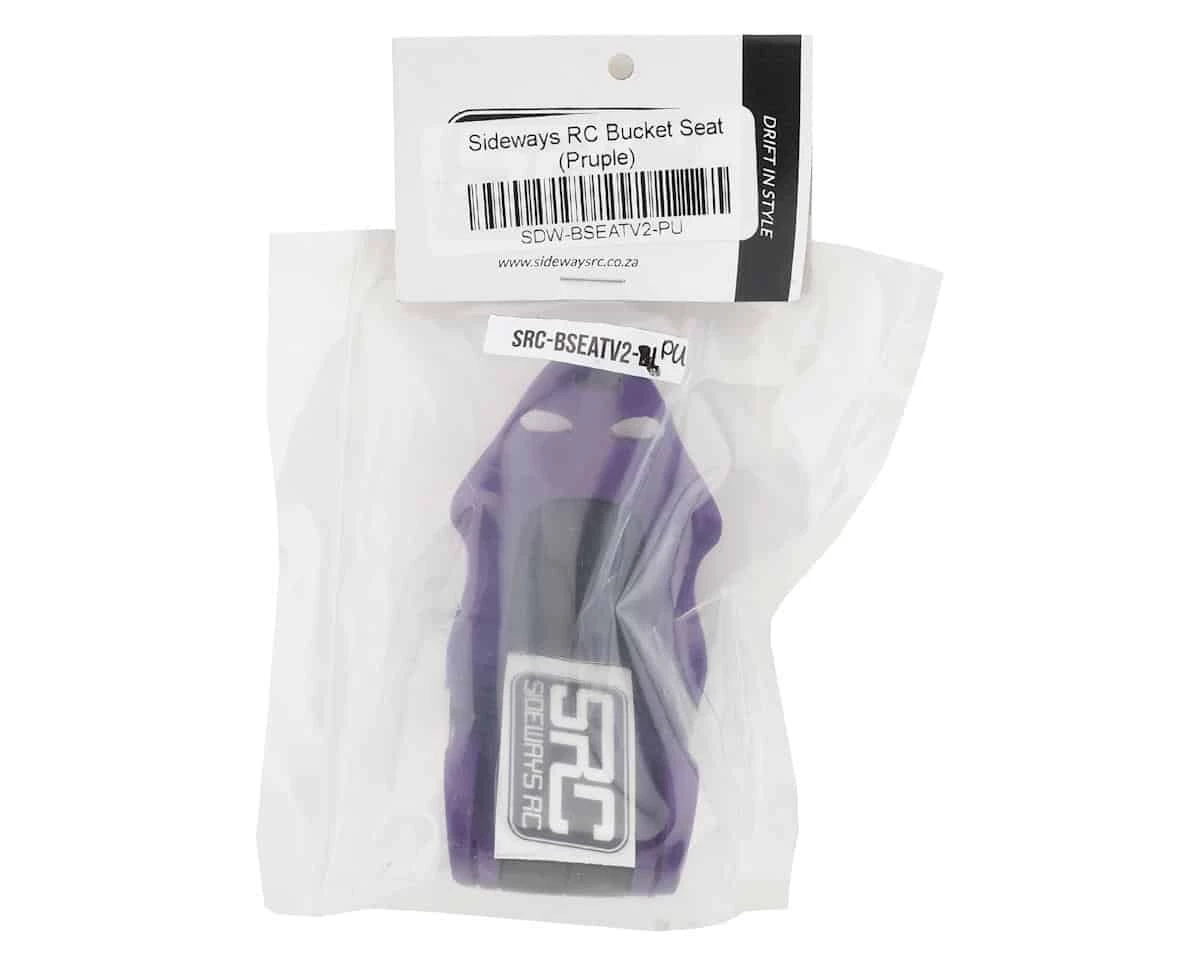 This is a Sideways RC Scale Drift Version 2 Purple Bucket Seat, a detailed scale option part to add realism to any 1/10 drift kit interior. This plastic part has been open cast molded out of quality polyurethane instead instead of 3D printed, keeping the cost down and quality up. This scale bucket seat is handmade with the coloring infused directly into the product. This pack includes one scale bucket seat that adds a high level of detail to any scale application.