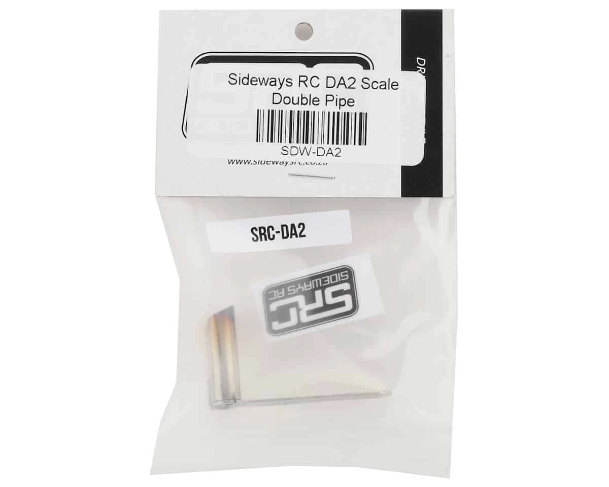 This is a Sideways RC Scale Drift DA2 Double Pipe Dual Exhaust Tip, a detailed scale option part to add realism to any 1/10 drift exhaust. This part has been cut from stainless steel and is a universal fit to all 1/10 scale bodies. This pack includes one scale dual pipe exhaust tip that has been heat treated to add a high level of detail to any scale application.