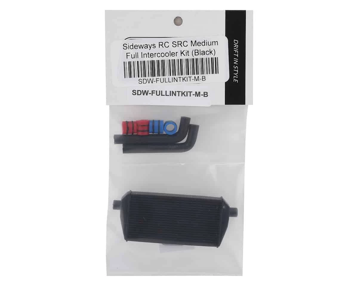This is a Sideways RC Scale Drift Full Medium Intercooler Kit, a detailed scale option part to add realism to any 1/10 drift kit engine bay. This plastic part has been open cast molded out of quality polyurethane instead of 3D printed, keeping the cost down and quality up. The intercooler is handmade with the black color infused directly into the plastic. This pack includes one molded plastic full intercooler, left and right pipe attachments and blue and red fitting options for installation.