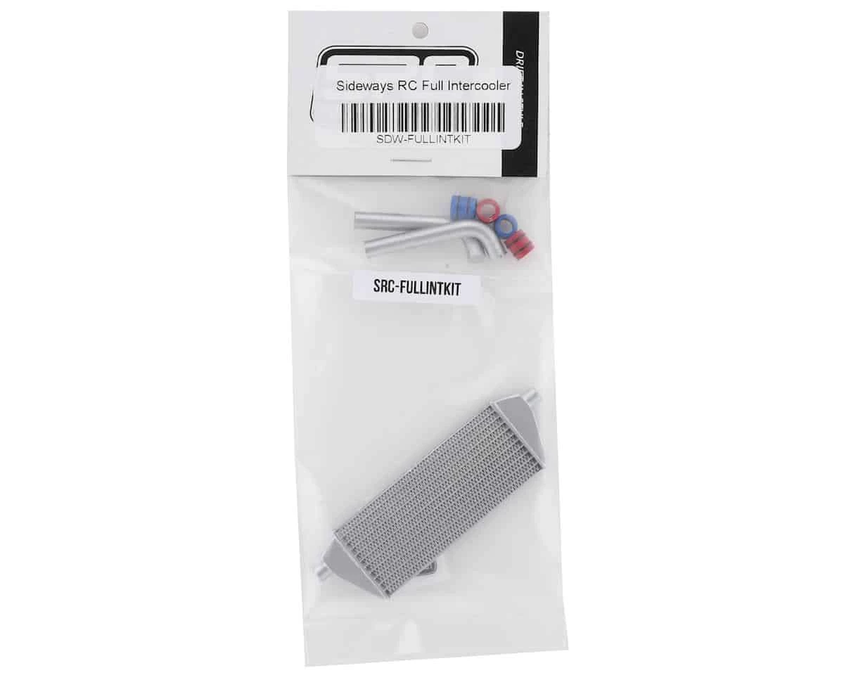 This is a Sideways RC Full Intercooler, a detailed scale option part to add realism to any 1/10 drift kit engine. This plastic part has been open cast molded out of quality polyurethane instead of 3D printed, keeping the cost down and quality up. The intercooler is handmade with the colors infused directly into the product in multiple pigment options and a realistic silver paint scheme applied. This pack includes one molded plastic full intercooler, left and right pipe attachments and blue and red fitting options for installation.