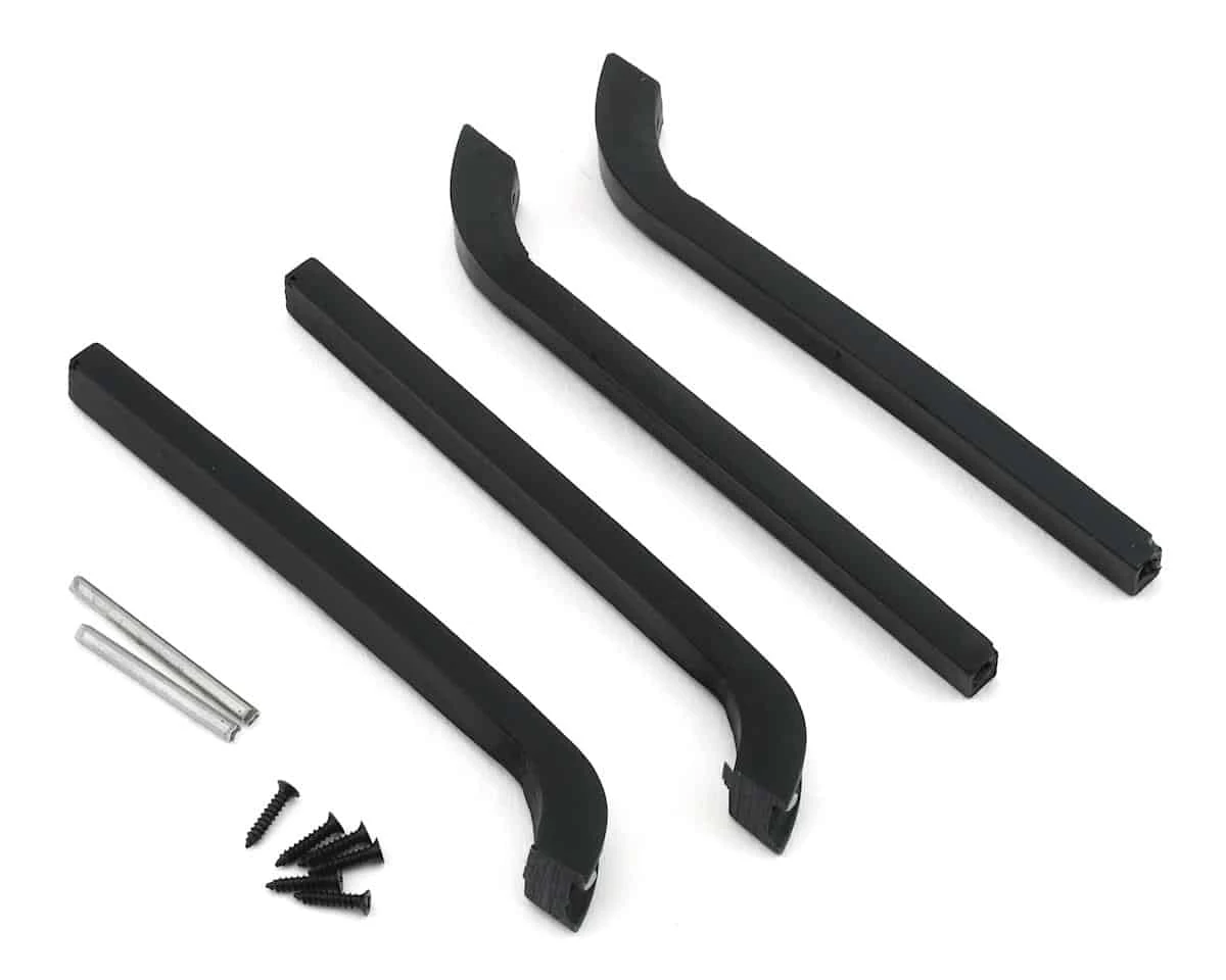 This is a set of Sideways RC Roof Rails, detailed scale option parts to add realism to any 1/10 drift kit. These plastic parts have been open cast molded out of quality polyurethane instead instead of 3D printed, keeping the cost down and quality up and are handmade with the colors infused directly into the product. This pack includes four roof rails and hardware to add a high level of detail to any drift application.