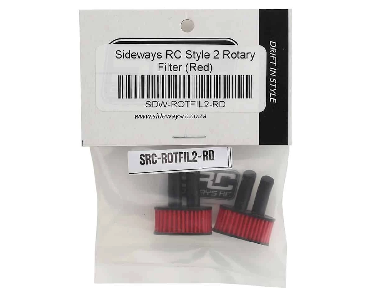 This is a set of Sideways RC Red Style 2 Rotary Filters, detailed scale option parts to add realism to any 1/10 drift kit engine. These plastic parts have been open cast molded out of quality polyurethane instead instead of 3D printed, keeping the cost down and quality up. These rotary filters are handmade with the colors infused directly into the product in multiple pigment options. This pack includes two molded plastic rotary filters and adds a high level of detail to any drift application.