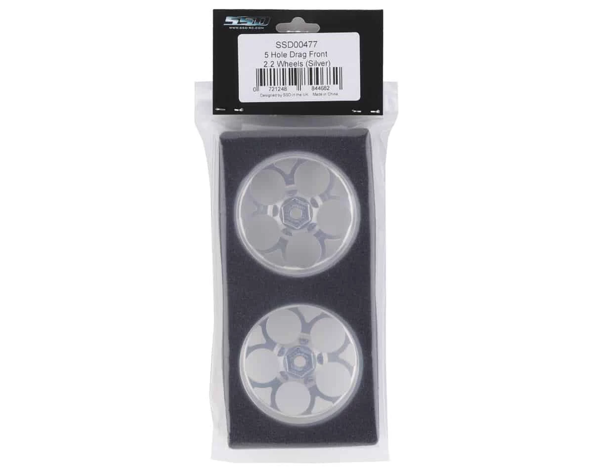 SSD 5 Hole Aluminum Front 2.2” Drag Racing Wheels are a lightweight aluminum front wheel option for your no-prep, street eliminator build. These standard 2.2 front wheels fit 2.2 buggy size drag racing tires, and weigh in at 23 grams each.
