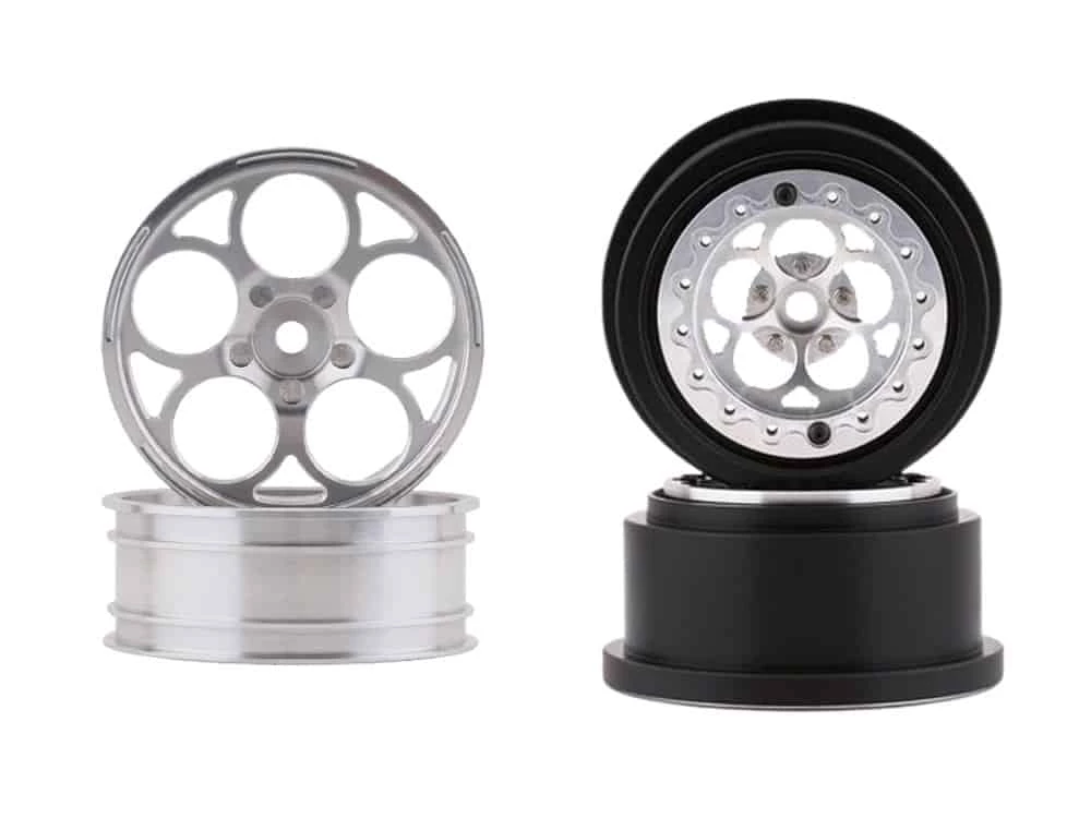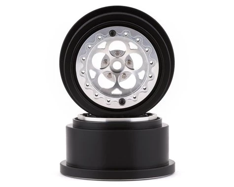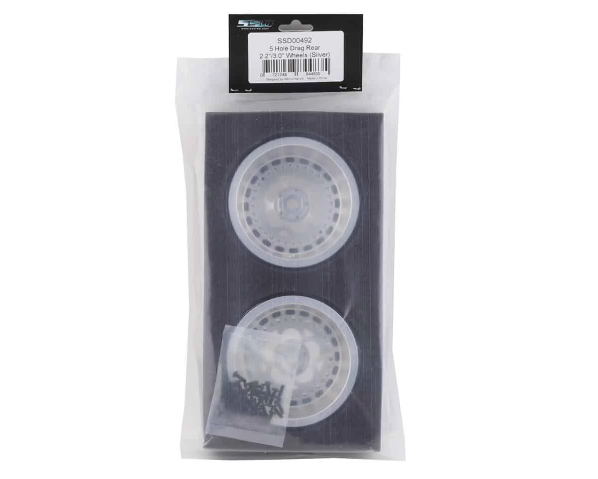 SSD 5 Hole Aluminum Rear 2.2”/3.0” Drag Racing Beadlock Wheels are a super light aluminum wheel option for racers that want to run a beadlock. These wheels are heavily machined, and feature a delrin inner ring that brings the weight down to 110 grams each. Plus, they feature scale hub bolts to add a higher level of detail, making them perfect for glamor shots and pre-race show n’ shine competitions. Standard 12mm hex and 23.6mm offset provides compatibility with all platforms, and when combined with the matching front wheel (SSD00477), you have a great looking and performing wheel package that cannot be matched by other aluminum drag beadlock wheels.